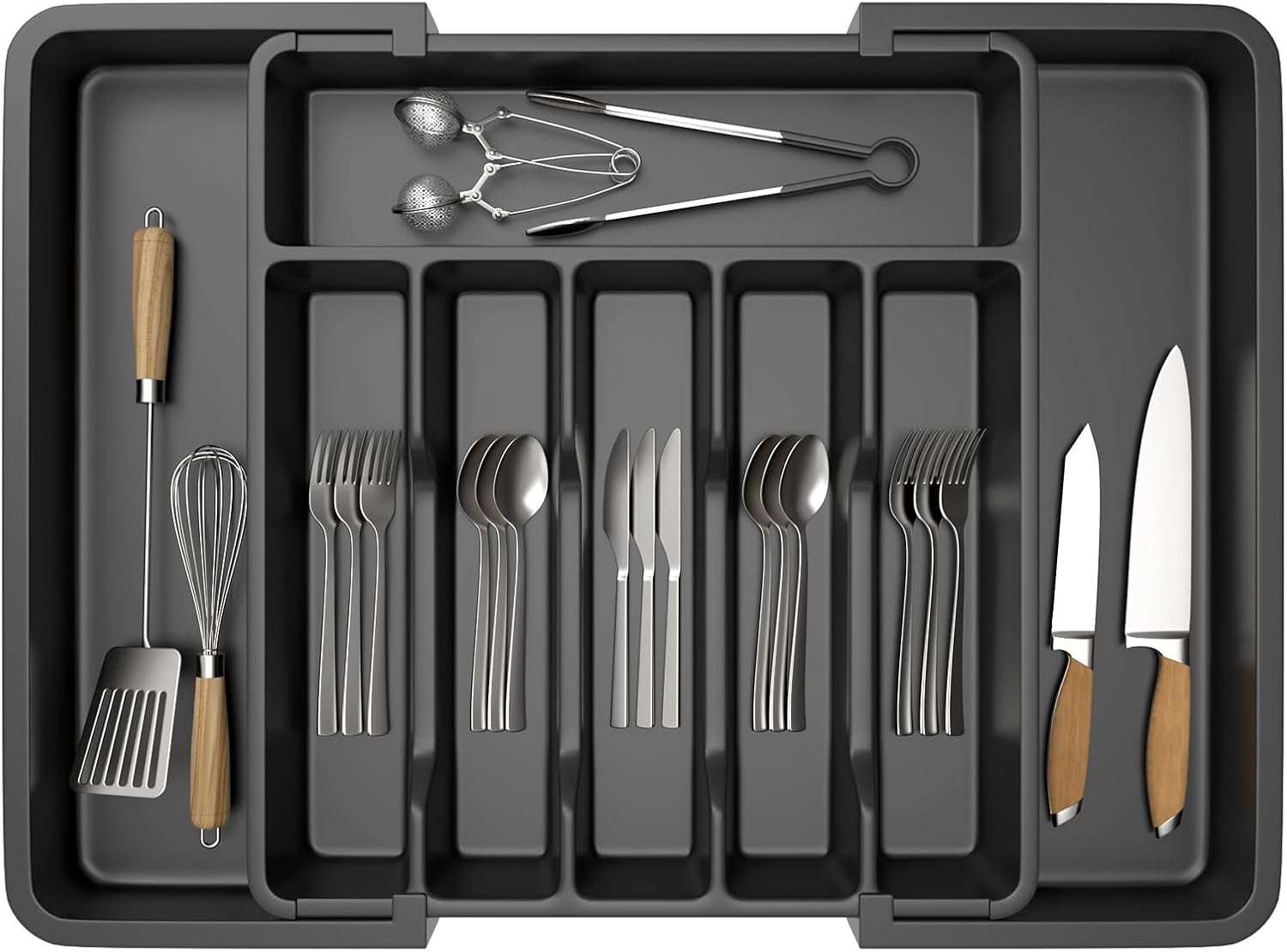 The Lifewit utensil organizer can be expanded from 7 compartments to 9 compartments, allowing for storage of more utensils, cookware, and kitchen tools.